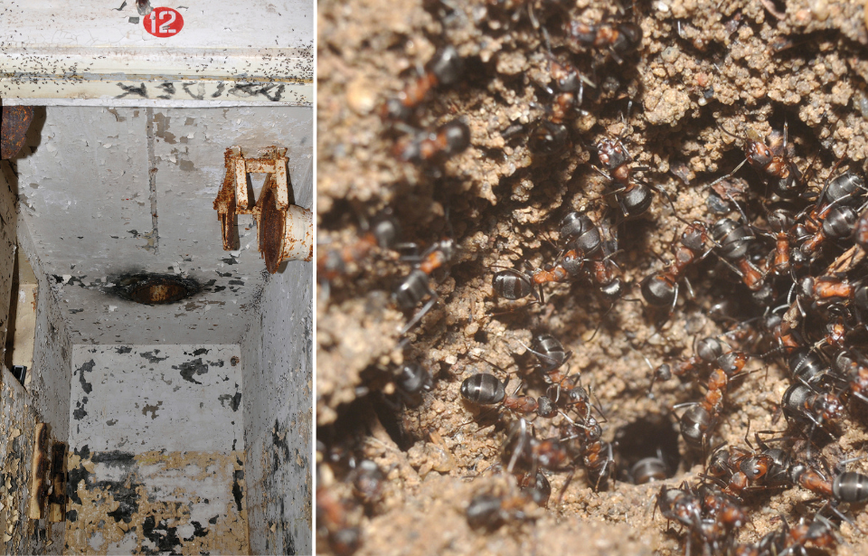 At the end of their second visit, the scientists installed a wooden beam that extended from the floor of the bunker to the rusted pipe. When they returned the following year, they found that the ants had taken advantage of the makeshift walkway and “almost deserted” the secondary colony – what they’d wanted all along was to reunite their with initial home.