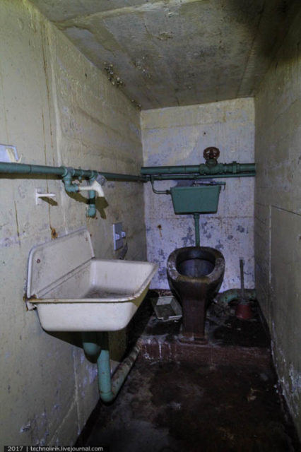 The facility did not have a sewage system. Instead, the sewage was pumped into a special tank in the adjacent room. In the same room, there is an emergency exit hatch.