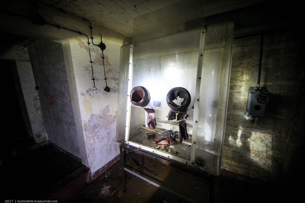 One of the four storage compartments. On the floor are holes for fixing hooks to secure trolleys with containers in case of seismic vibrations from a nuclear explosion. Initially, nuclear warheads for Soviet ballistic missiles R-11M and 3R10 for 2K6 Luna short-range missile complex were stored at the facility. Later, in the 1980s, it is likely that warheads for more modern missile complexes were stored here, but information about this is classified.