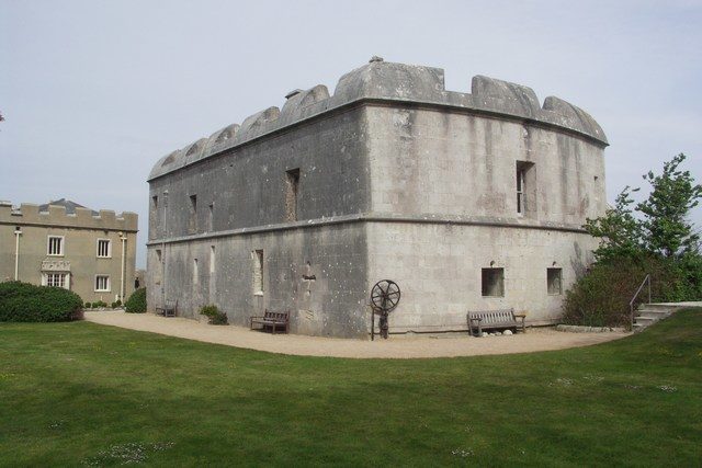 Portland Castle is an artillery fort constructed by Henry VIII on the Isle of Portland, Dorset, in the early 1540s. The castle was built from Portland stone, with a curved central tower and a gun battery, and it formed part of the King’s Device program to protect against invasion from France and the Holy Roman Empire.