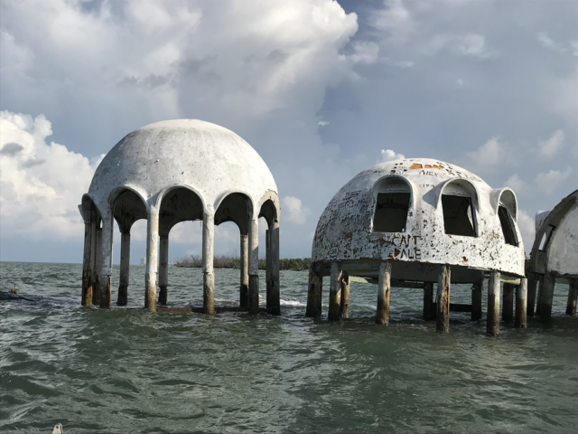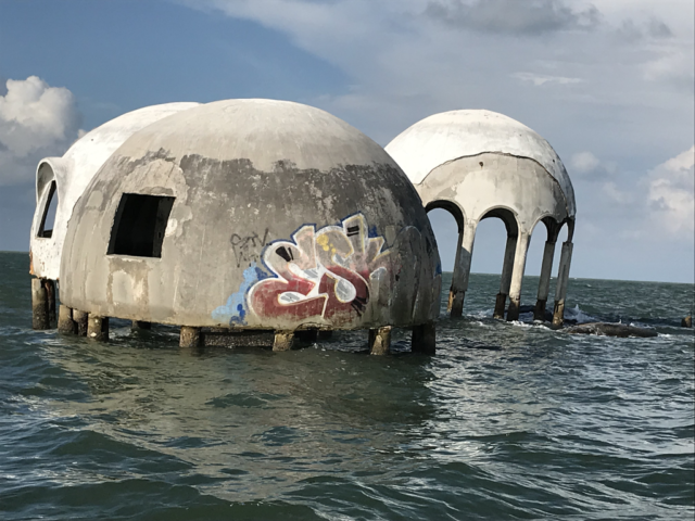 Although the domes were originally built on Morgan Island, the erosion now means that the structure is closer to Cape Romano, hence its more common name of “Cape Romano Dome House.”